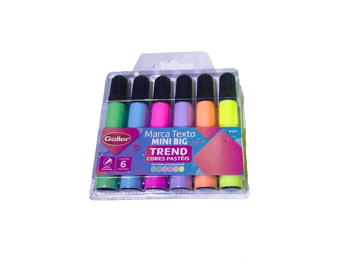 Marca Texto Color Trend 6 pçs Cores Tons Pastéis Mini Big Goller