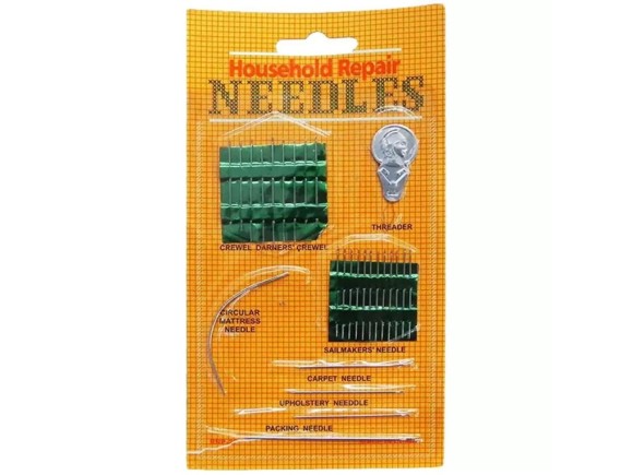 Cartela com 26 agulhas, sendo 9 médias, 12 pequenas, 4 grandes. Acompanha também 1 agulha curva e 1 passador de linha. Versatilidade a qualquer hora para costuras à mão ou reparos em tecidos, tecidos grossos, couro, lona, tapeçaria e sacaria. Prático e indispensável.