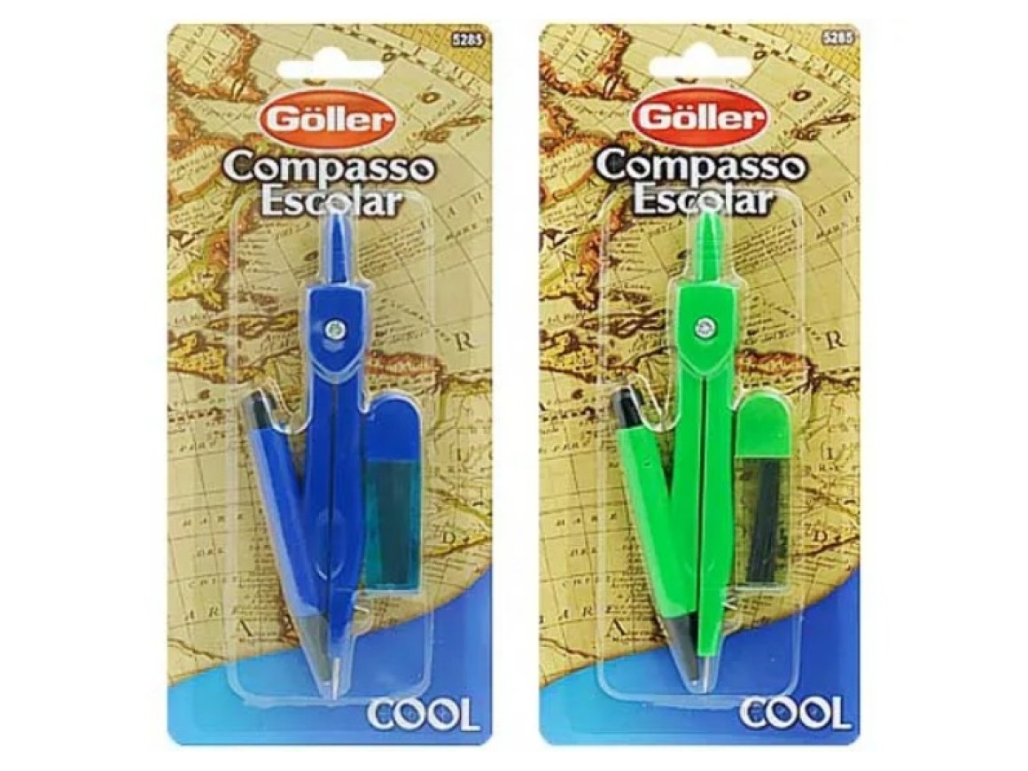 Compasso escolar de plástico. Ideal para geometria escolar. Acompanha um compasso e um refil de grafite.